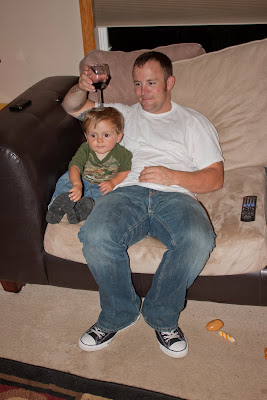 O'rien enjoyed his dinner so much at grandma and grandpa's house tonight that we had to throw him right into the bath. What a messy face he still had by the time I got the pictures, and it had been way worse than this.